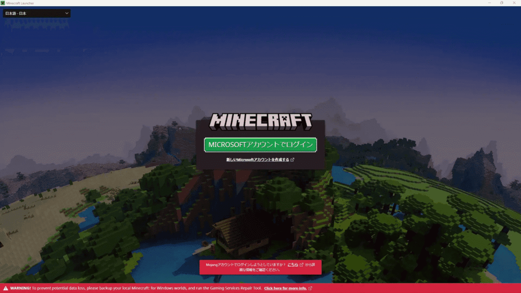 インストールが完了したら、Minecraftを起動してログインします。手順は以下の通りです。