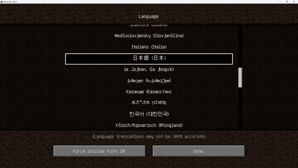 このままだと言語が英語でプレイしにくいので日本語に変更するために「Language…」をクリックします。