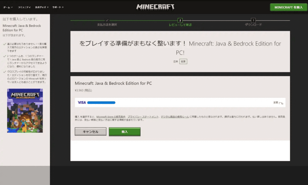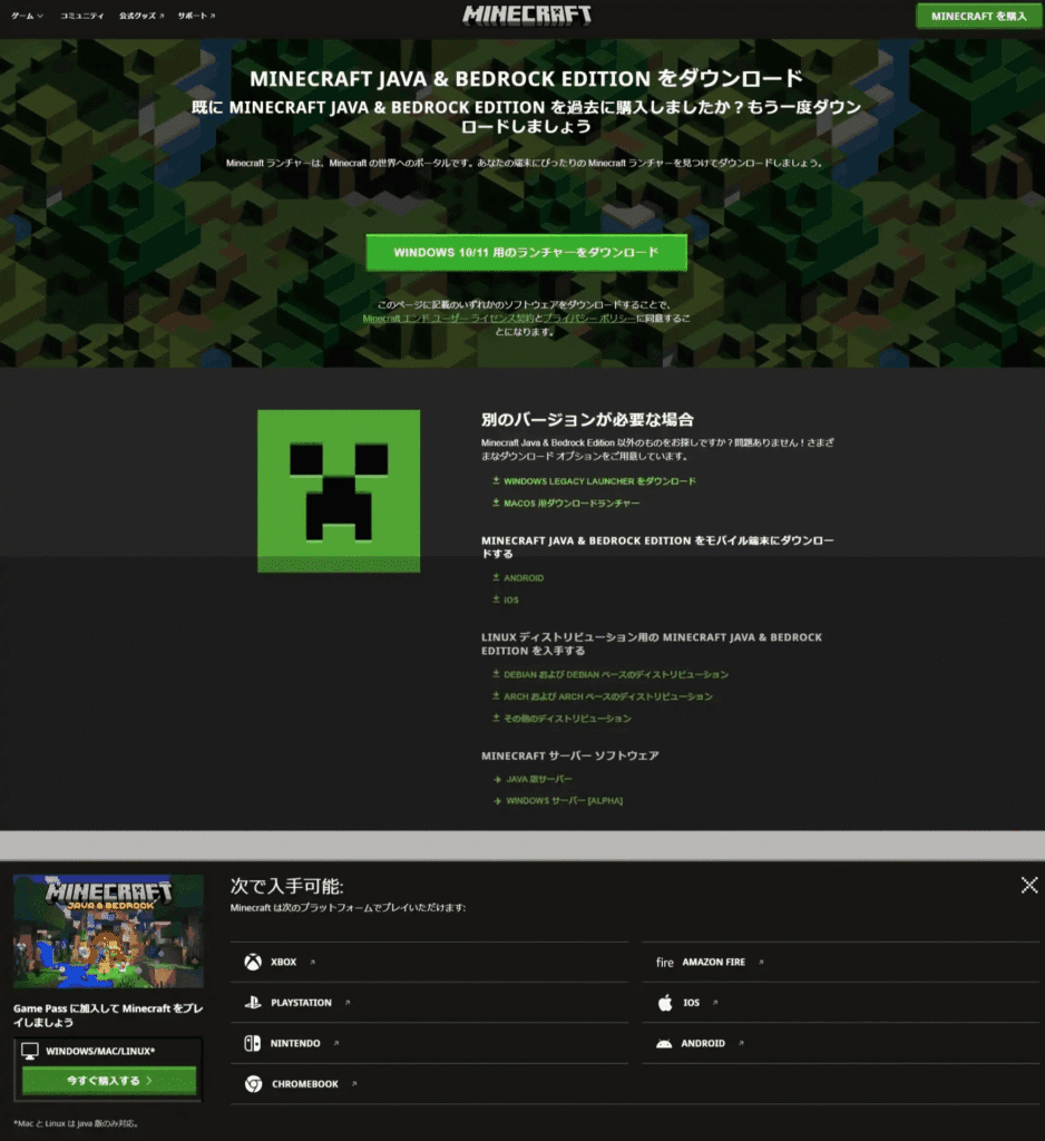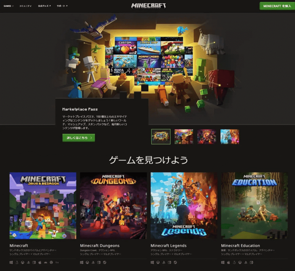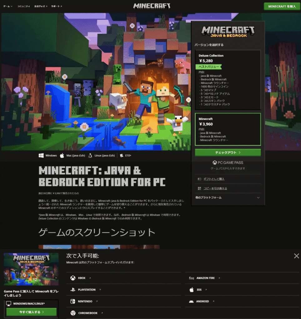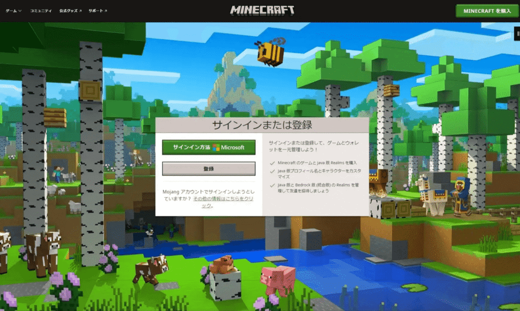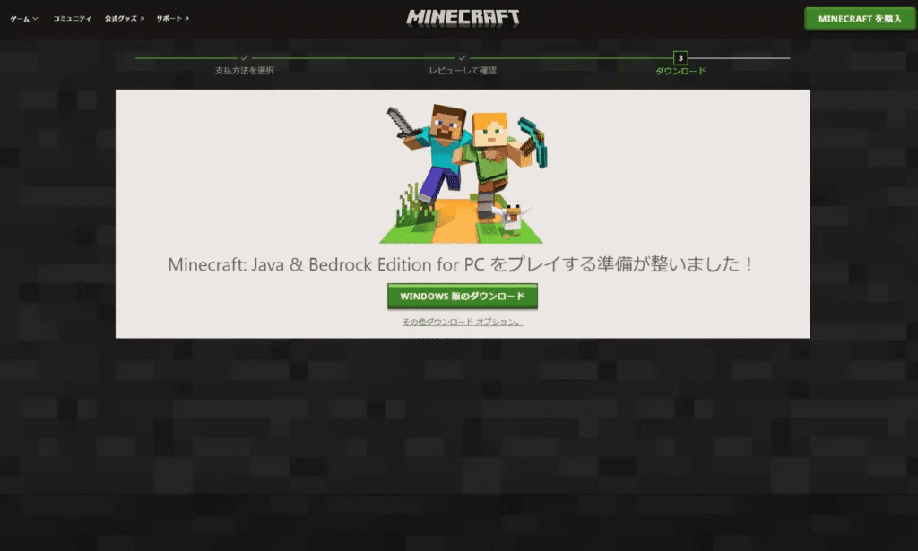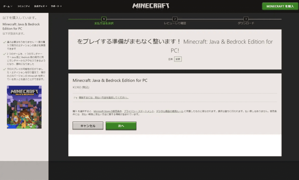まずは、Minecraftをプレイするために、ゲームを購入する必要があります。購入は公式サイトから行うことができます。