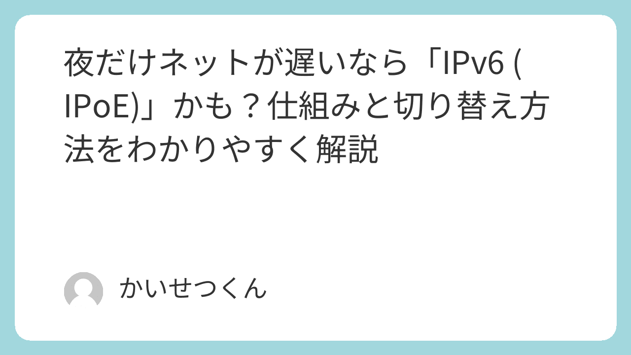 この記事では、混雑知らずの高速通信規格「IPv6 IPoE(アイピーブイシックス・アイピーオーイー)」について、ネットガイド「かいせつくん」が専門用語を使わずにわかりやすく解説します。